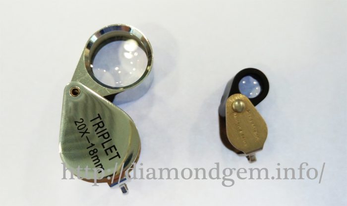 下面是國產和美國產的20倍放大鏡。倍數越大,焦距越短,看石頭時也要靠鏡頭越近,這樣才可以將鑽石影像清晰放大,10倍鏡是25mm的焦距。