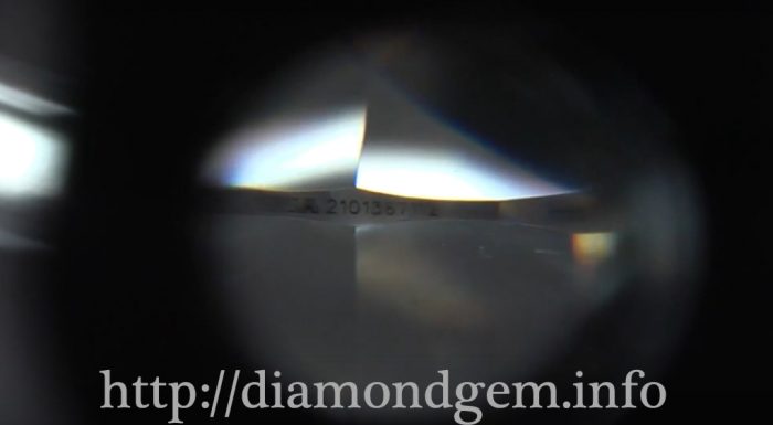 用食指穿過金屬環並握緊,姆指按住金屬環以固定其位置;另一隻手用鑷子爪住石頭,以中指則邊托住鑷子,這樣就可以用中指前後來回的移動來對焦,然後再慢慢轉動鑷子,直到看到雷射碼。如果你是第一次檢查雷射碼,那可能要練習一天才能掌握技巧。練習時不要先看gia証書上面的號碼,要觀察完後叫人念給你聽對不對,這樣就可以防止你下意識默認了證書上的號碼,而馬虎了事。一般細份石上的號碼比較難以查看,像三十多份的鑽石。一卡或以上的都是很容易查看到雷射碼了